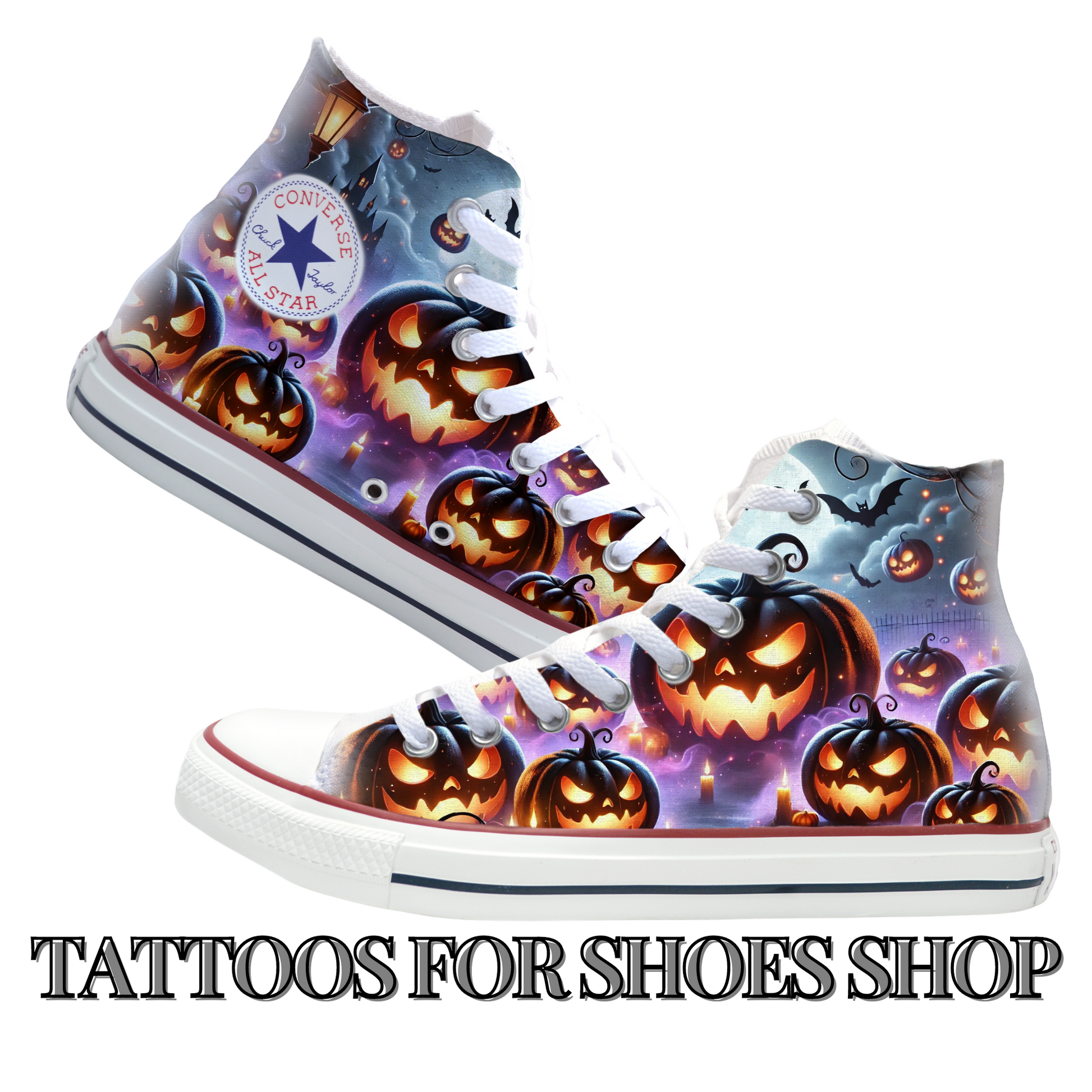 Converse Chucks High Top Shoes Spooky Pumpkins.