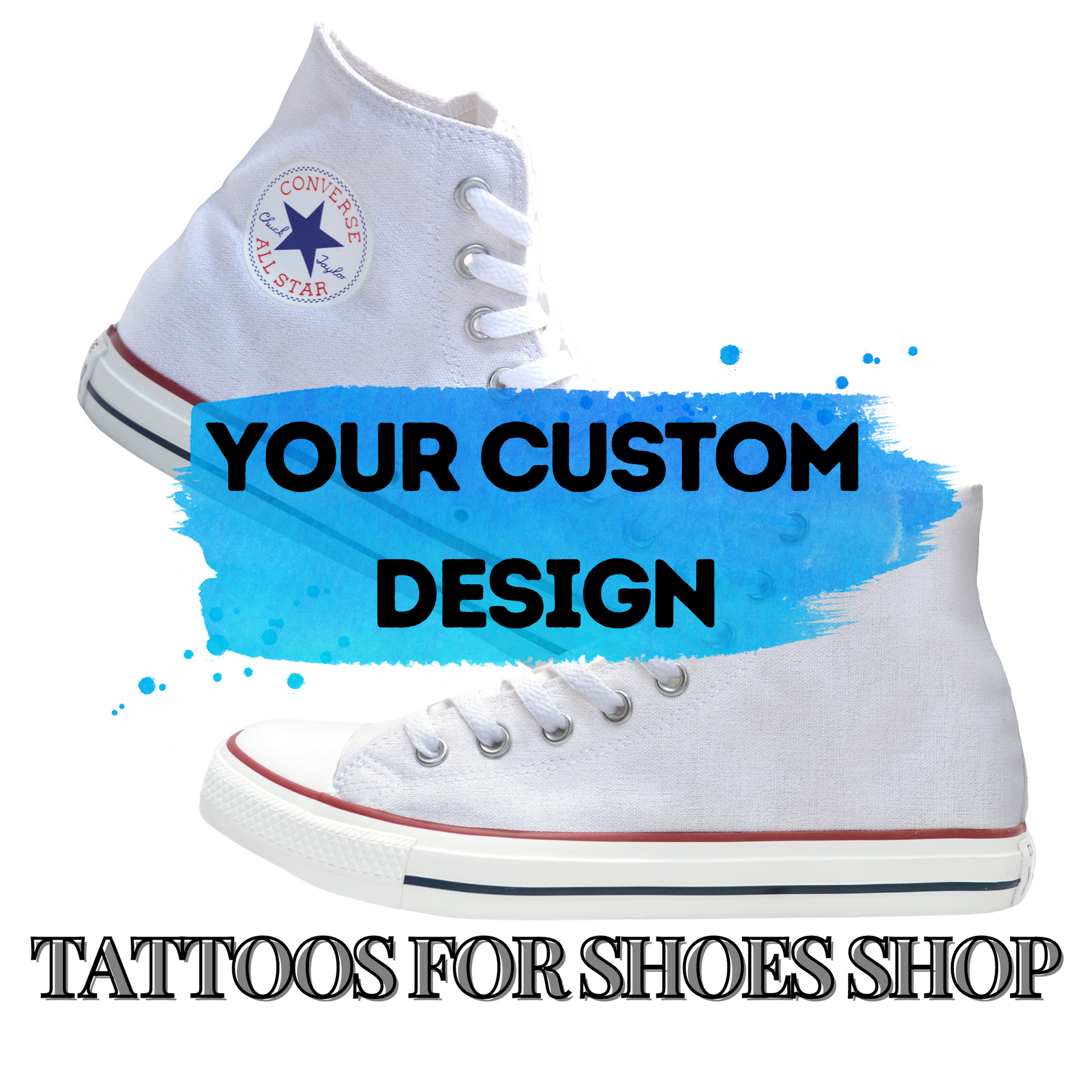 Converse Chucks High Top Shoes. We design your shoe for you! CUSTOM. Once we see your order come through, we'll email you to get your ideas for your shoes. You'll also have the opportunity to edit the design before your shoes are made.